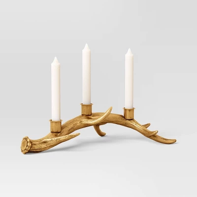 This Taper Metal Antler Christmas Sculpture Candle Holder from Wondershop™ makes a great seasonal accent. It features a bright gold finish to bring a glam look to your festive display. Compatible with three taper candles, this decorative and functional piece can be placed on your mantel, entryway console or dining table for endless display and lighting options.