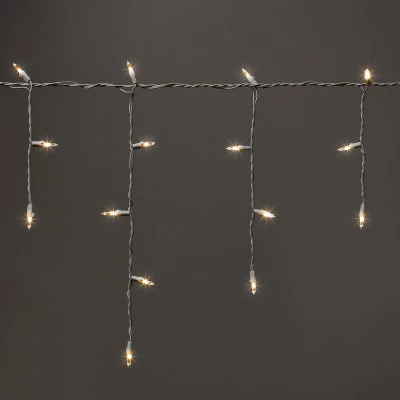 Create a bright and festive backdrop for your party or everyday holiday decor with the 70-Count LED Christmas Icicle Lights with White Wire from Wondershop™. The set includes 70 lights that hang down from the main wire to mimic the look of icicles. The lights are white and LED, also suitable for indoor and outdoor use. Add these lights to windows or walls, or hang in the porch to illuminate your home with holiday cheer.